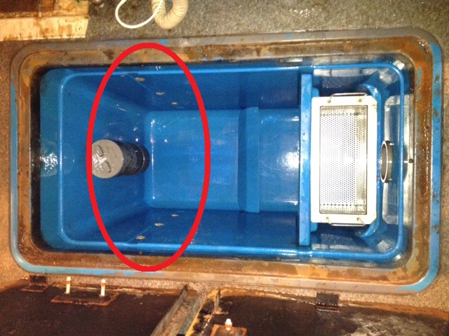 以下は、仕切り板2枚のうち、1枚を取り外してあるグリストラップです。
