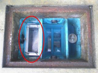 その段階で排水中に含まれる異物や生ごみが、網カゴに引っ掛かります。
