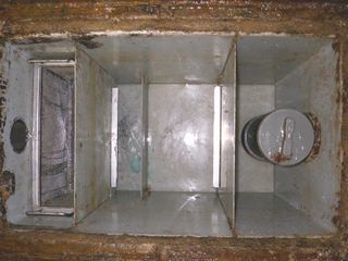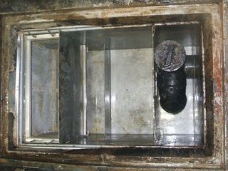 フタを開けて上から覗くだけでは、グリストラップの構造がよく分かりません。